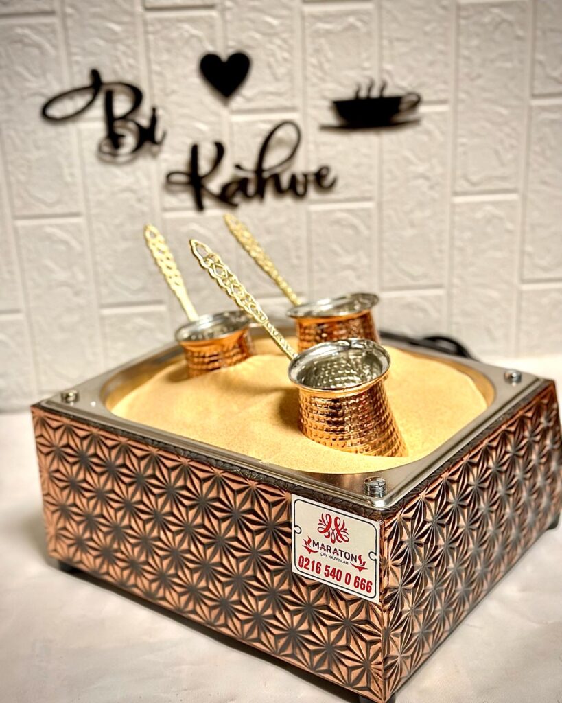 Kumda kahve makineleri elektrik özellikli kum ısıtması sonucu çalışan bakır kahve makineleridir.Ürün elektrik özelliklidir.