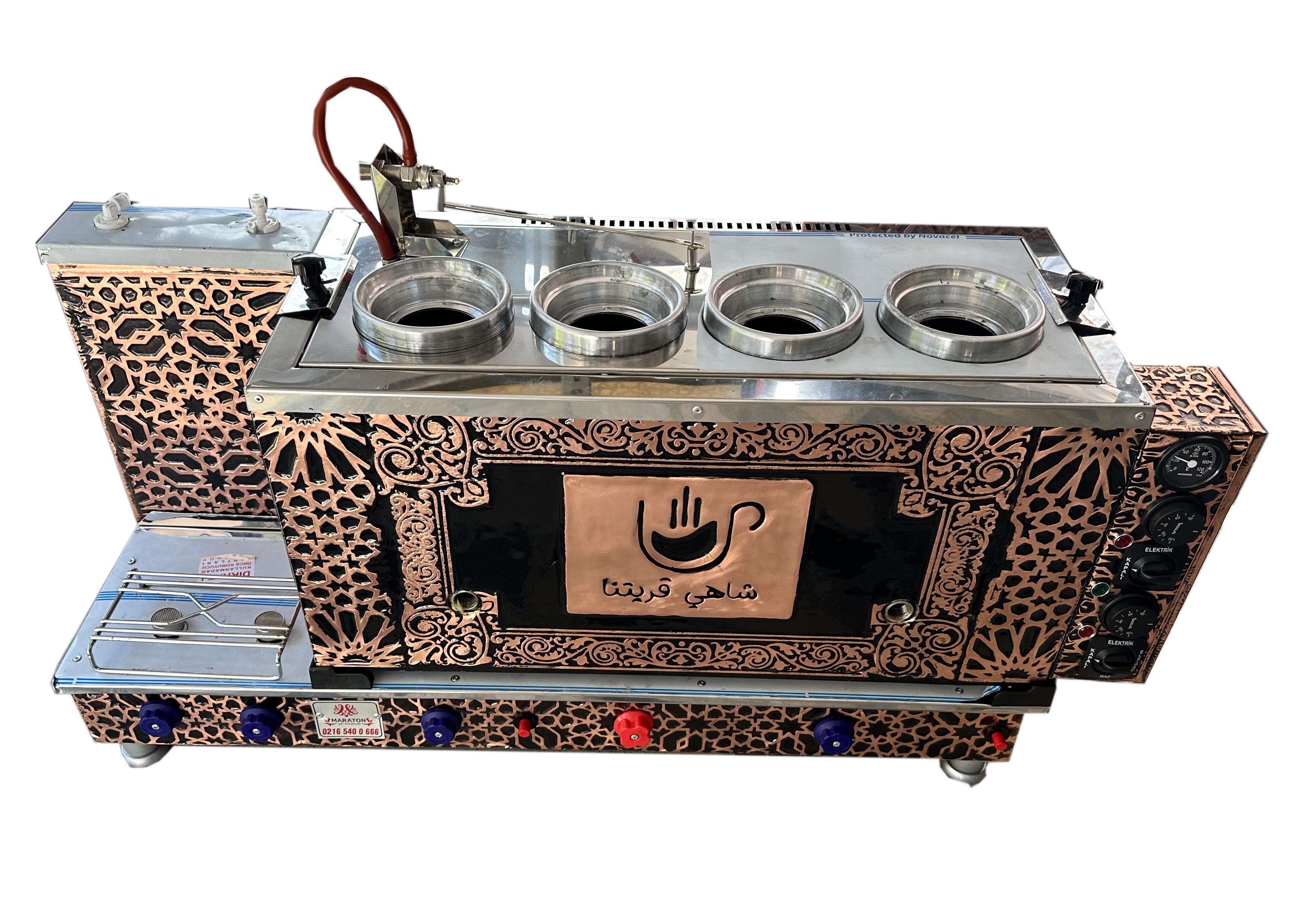 Dört Demlikli Bakır Çay Kazanı Elektrikli Gazlı Şamandıralı Çay Ocağı
